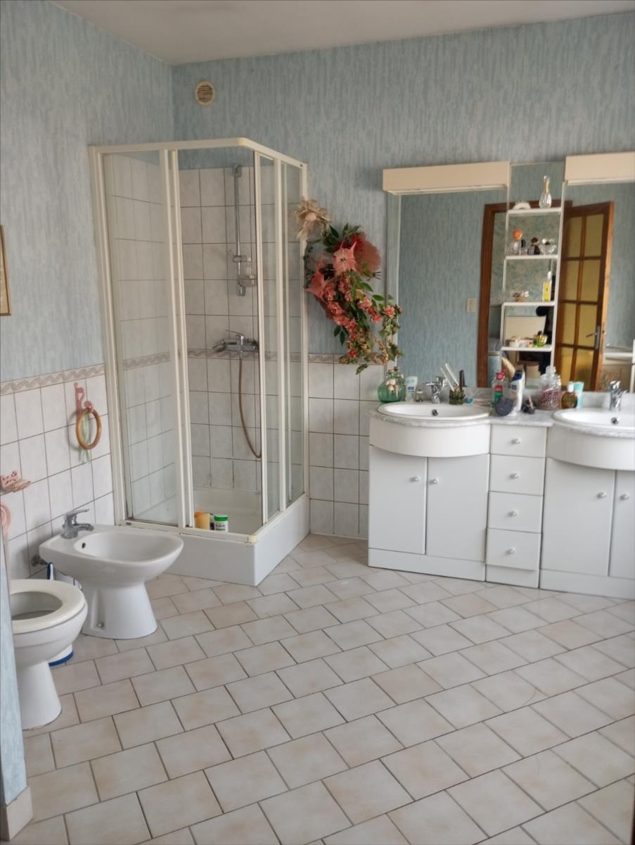 *à l'étage : une chambre avec accès directe à une grande salle de bains et dressing, deux chambres dont une traversante, une quatrième chambre avec coin pour dressing ou bureau, une deuxième salle de bains à rénover et des rangements ;